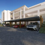 Для каждой квартиры имеется открытая парковка под беседкой, обеспечивающей тень.